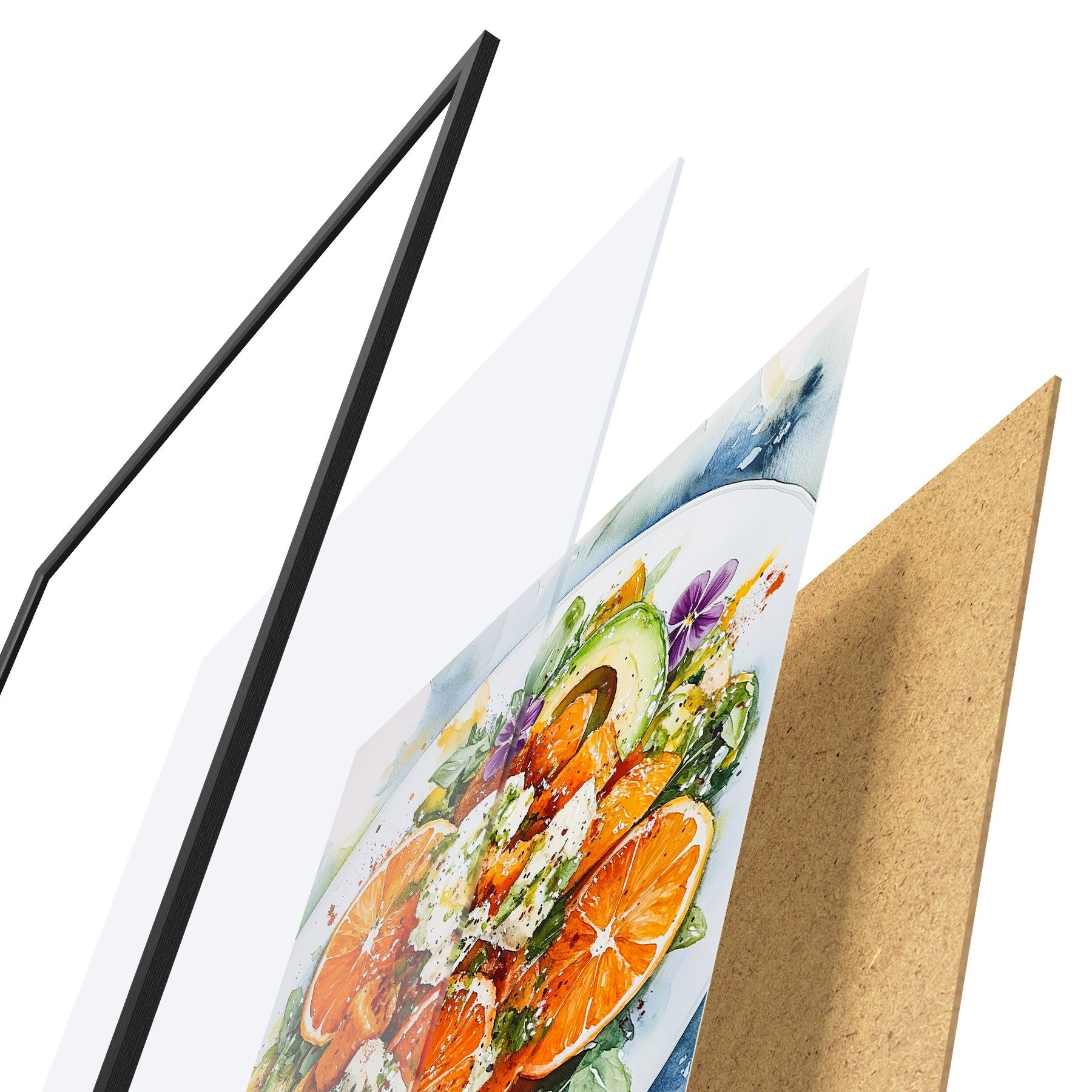 Poster Deliciosa ensalada con naranjas, queso feta, calabazas y aguacate, comida de acuarela f41959