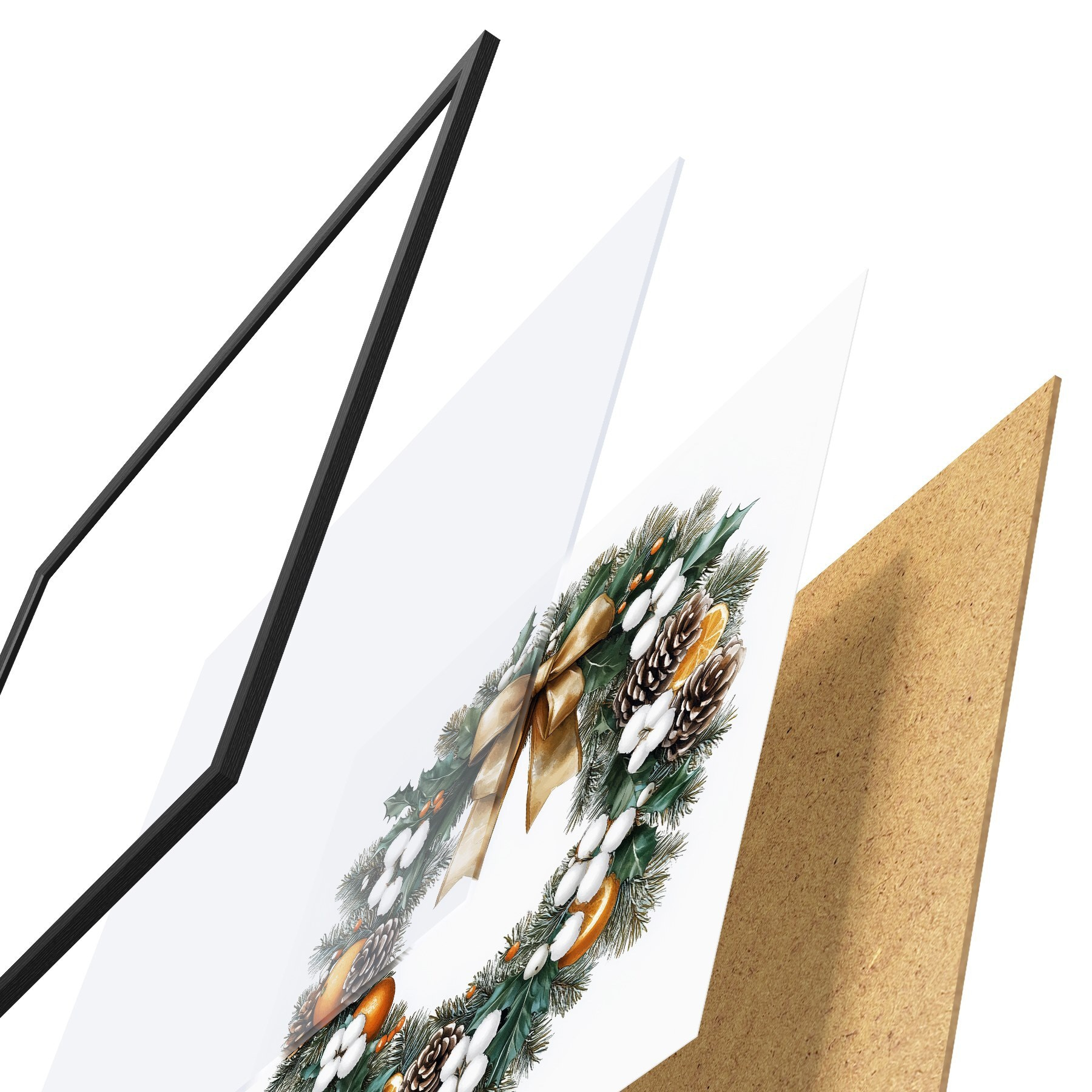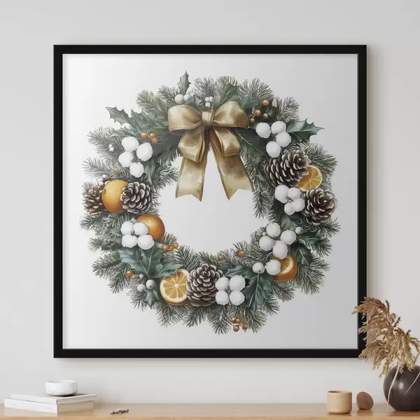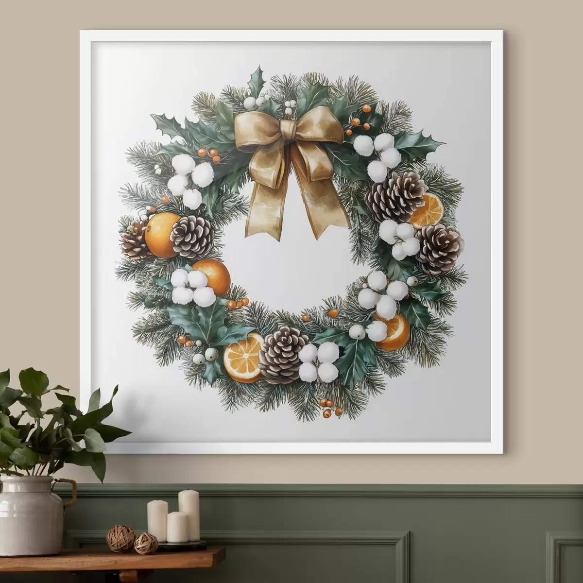 Poster Corona navideña de pino con lazo, algodón, naranjas, bayas y piñas Nr f41962