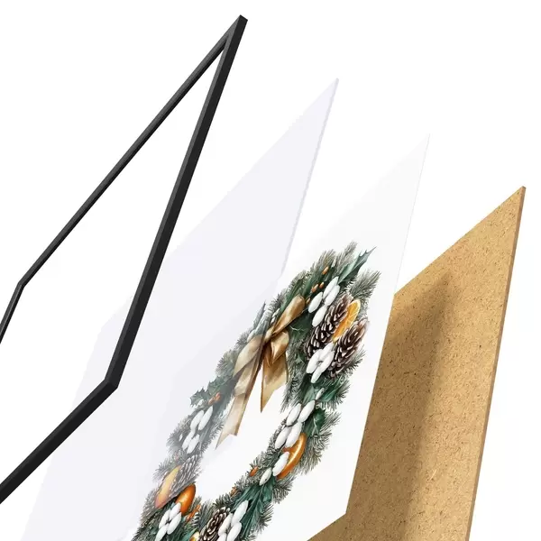 El póster consta de marco, plexiglás, imagen impresa y soporte de aglomerado. El póster puede colgarse inmediatamente en la pared gracias a los soportes de la parte posterior.