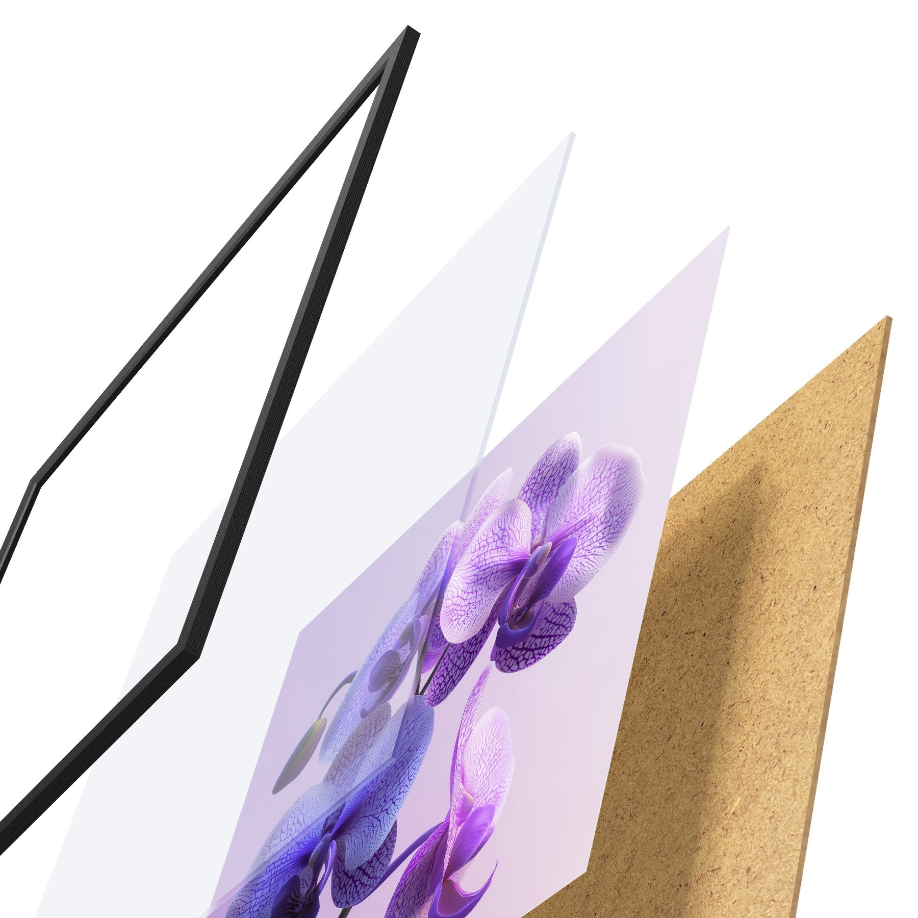 El póster consta de marco, plexiglás, imagen impresa y soporte de aglomerado. El póster puede colgarse inmediatamente en la pared gracias a los soportes de la parte posterior.
