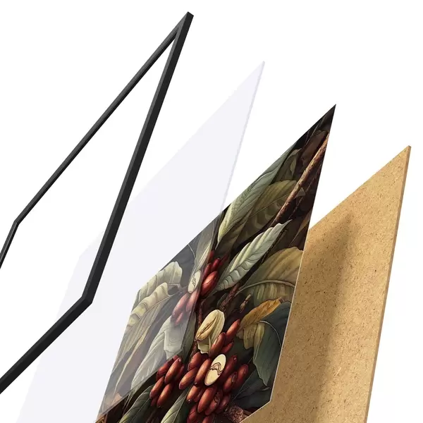 El póster consta de marco, plexiglás, imagen impresa y soporte de aglomerado. El póster puede colgarse inmediatamente en la pared gracias a los soportes de la parte posterior.