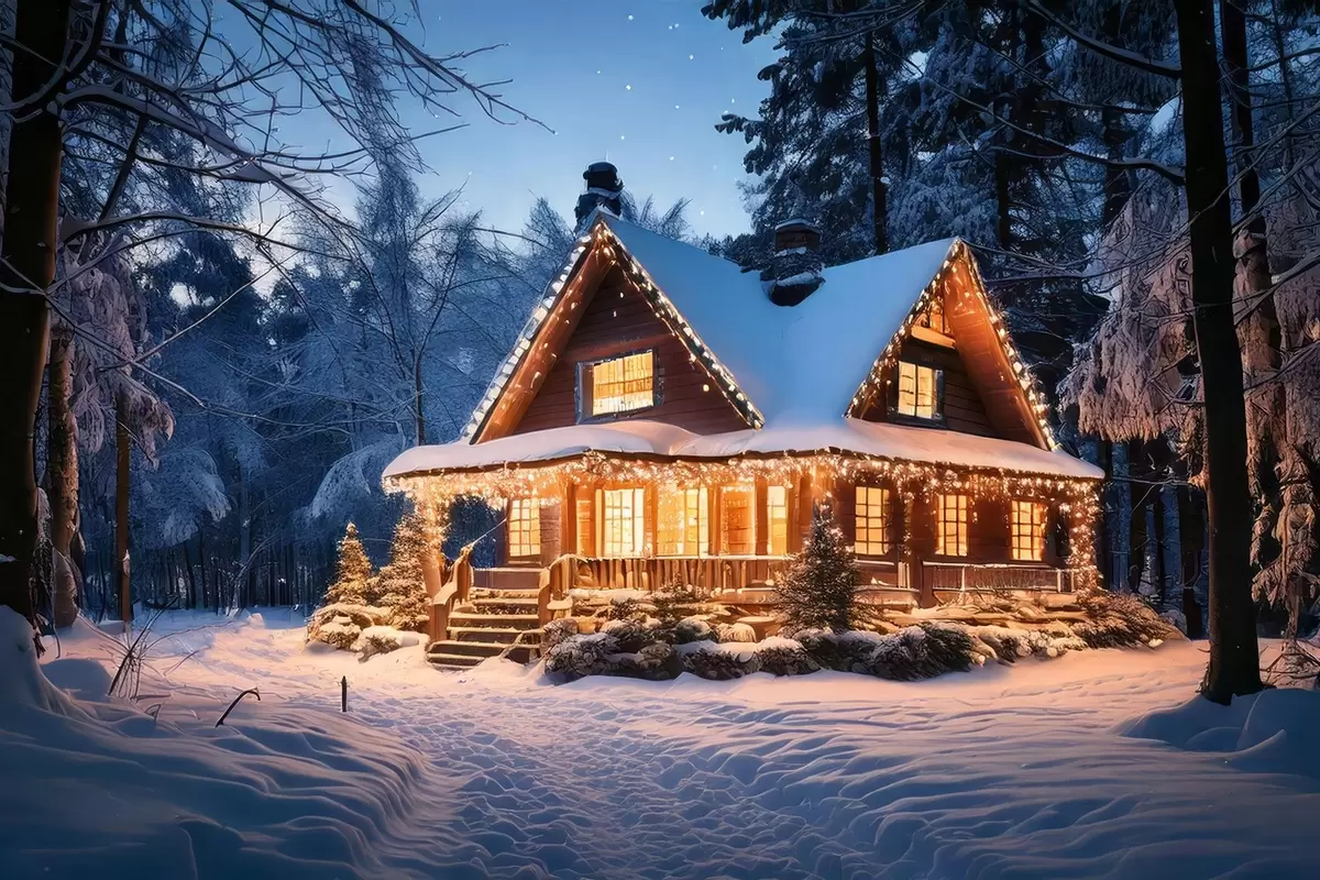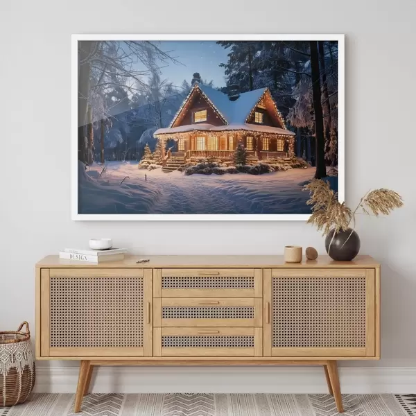 Poster acogedora casa en el bosque en invierno Nr f41997