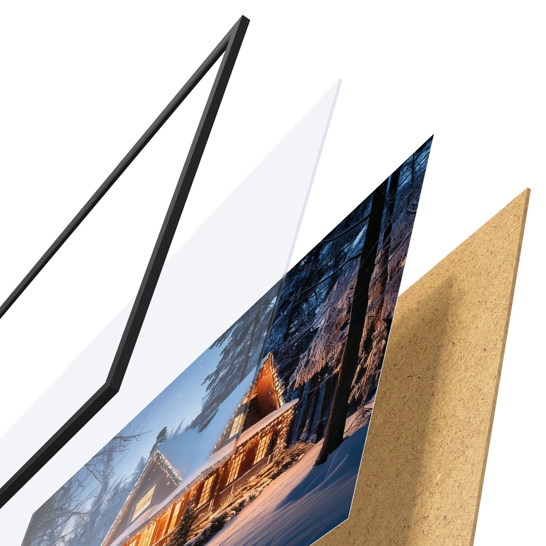El póster consta de marco, plexiglás, imagen impresa y soporte de aglomerado. El póster puede colgarse inmediatamente en la pared gracias a los soportes de la parte posterior.