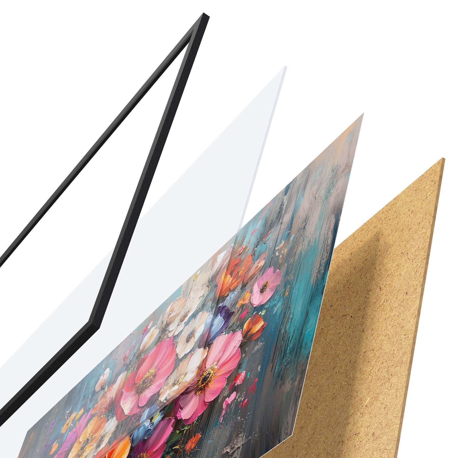 El póster consta de marco, plexiglás, imagen impresa y soporte de aglomerado. El póster puede colgarse inmediatamente en la pared gracias a los soportes de la parte posterior.