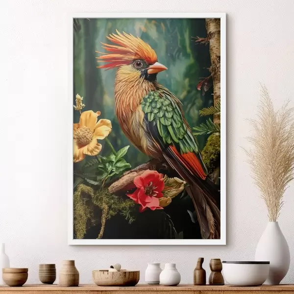 Poster un pájaro brillante en una rama f42028