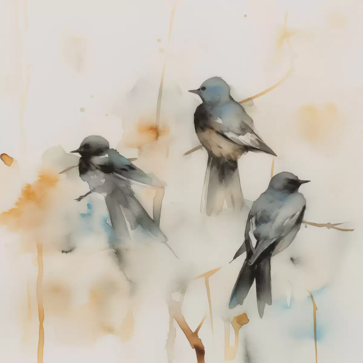 Poster Imitación de pájaros estilo acuarela húmeda Nr f42031