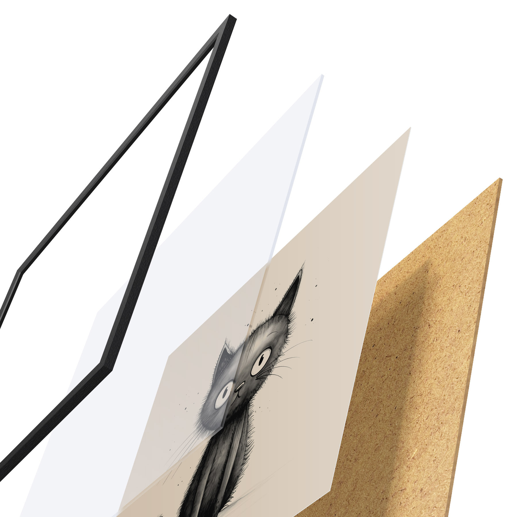 El póster consta de marco, plexiglás, imagen impresa y soporte de aglomerado. El póster puede colgarse inmediatamente en la pared gracias a los soportes de la parte posterior.