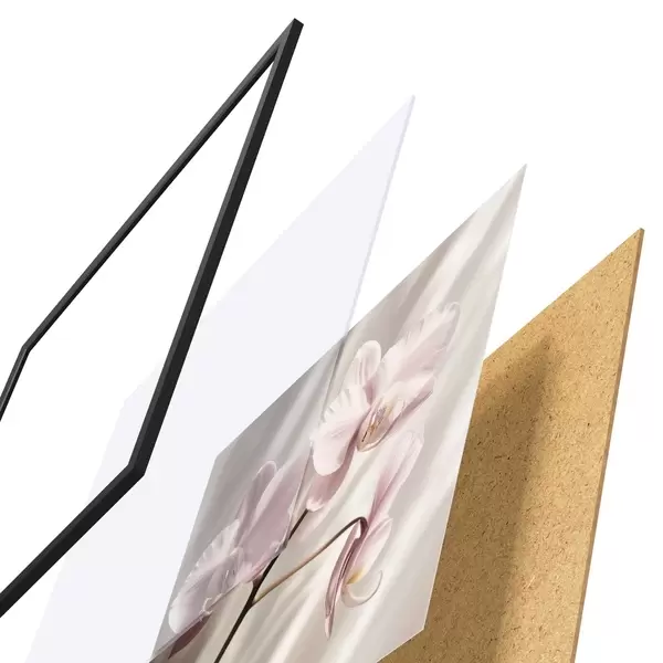 El póster consta de marco, plexiglás, imagen impresa y soporte de aglomerado. El póster puede colgarse inmediatamente en la pared gracias a los soportes de la parte posterior.