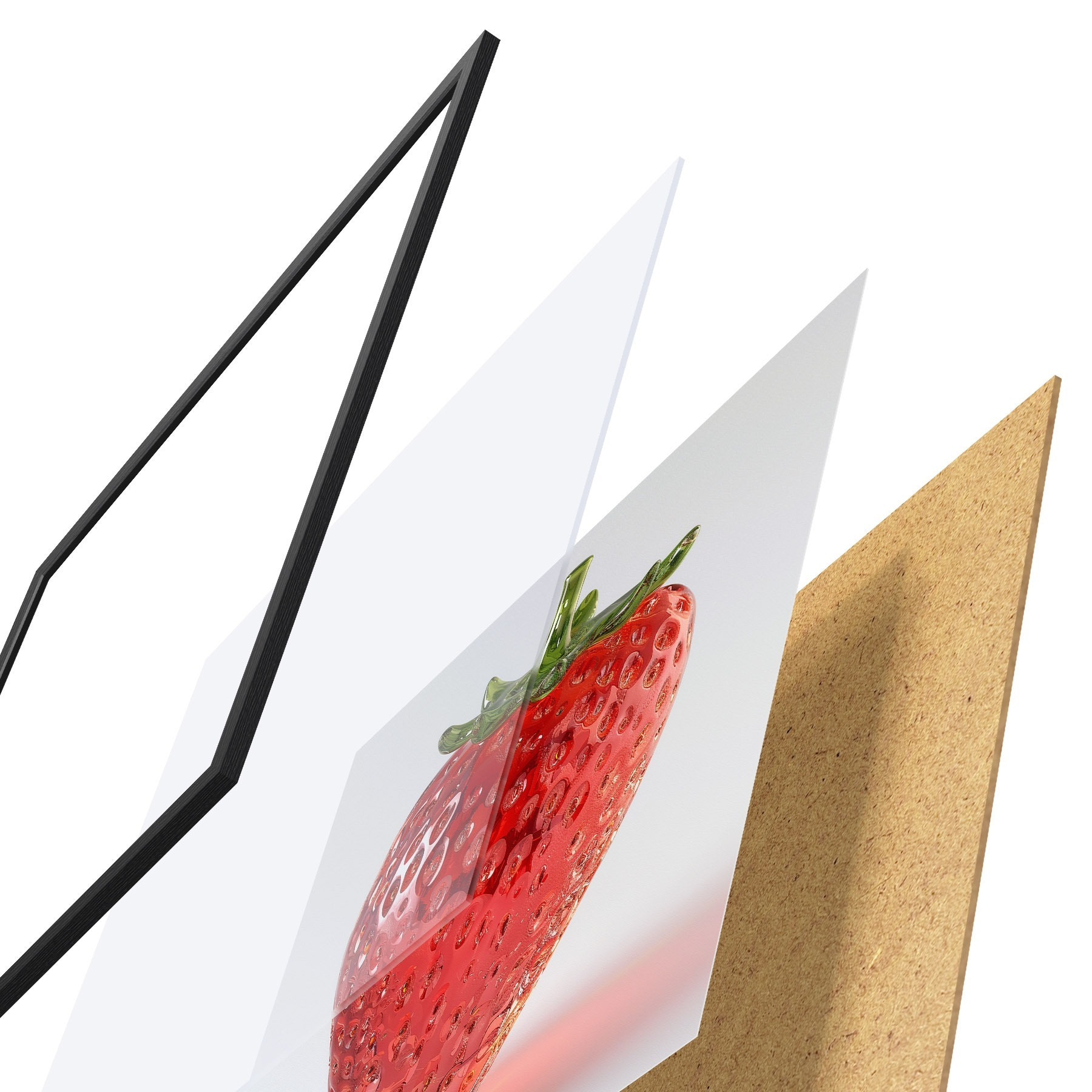 El póster consta de marco, plexiglás, imagen impresa y soporte de aglomerado. El póster puede colgarse inmediatamente en la pared gracias a los soportes de la parte posterior.