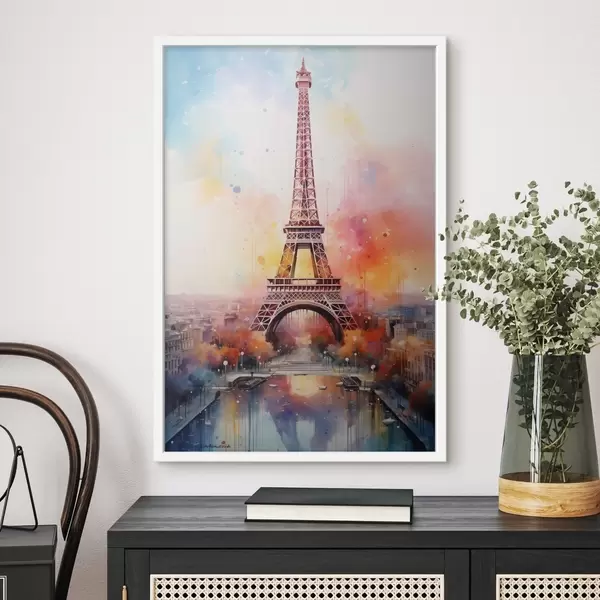 Poster París sobre un fondo de salpicaduras de acuarela Nr f42081