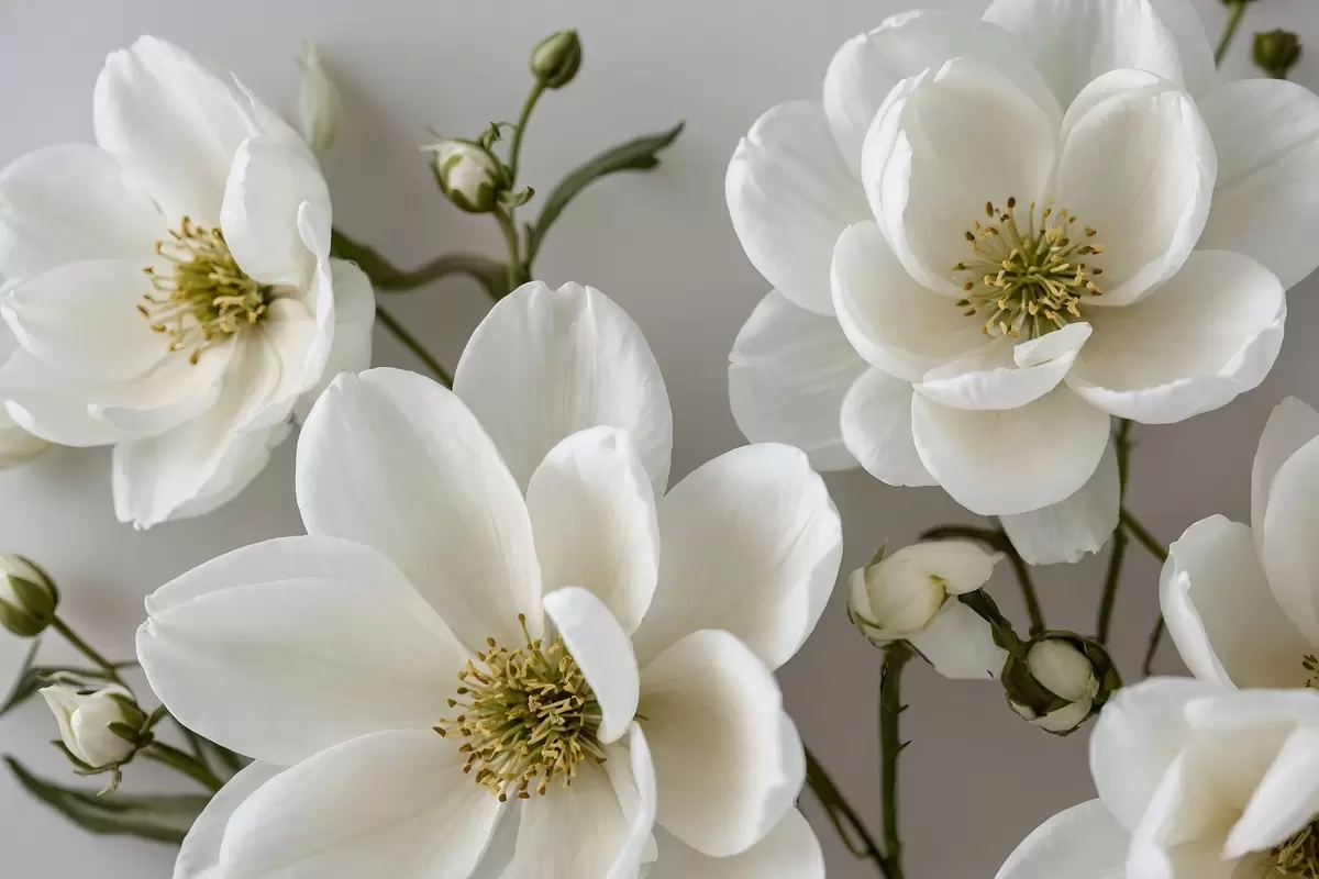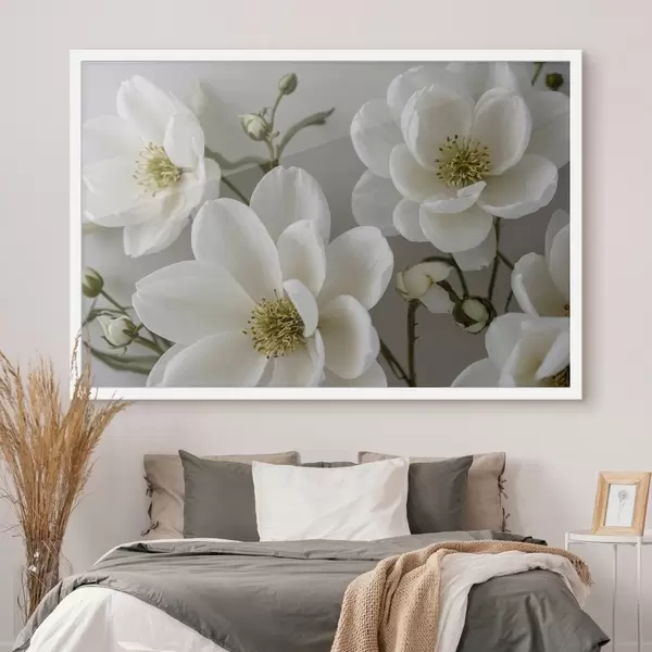 Poster Flores y tallos blancos sobre fondo claro Nr f42097