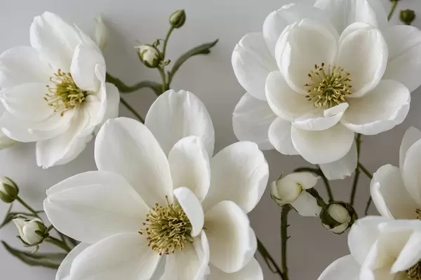 Poster Flores y tallos blancos sobre fondo claro f42097