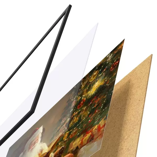 El póster consta de marco, plexiglás, imagen impresa y soporte de aglomerado. El póster puede colgarse inmediatamente en la pared gracias a los soportes de la parte posterior.