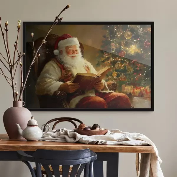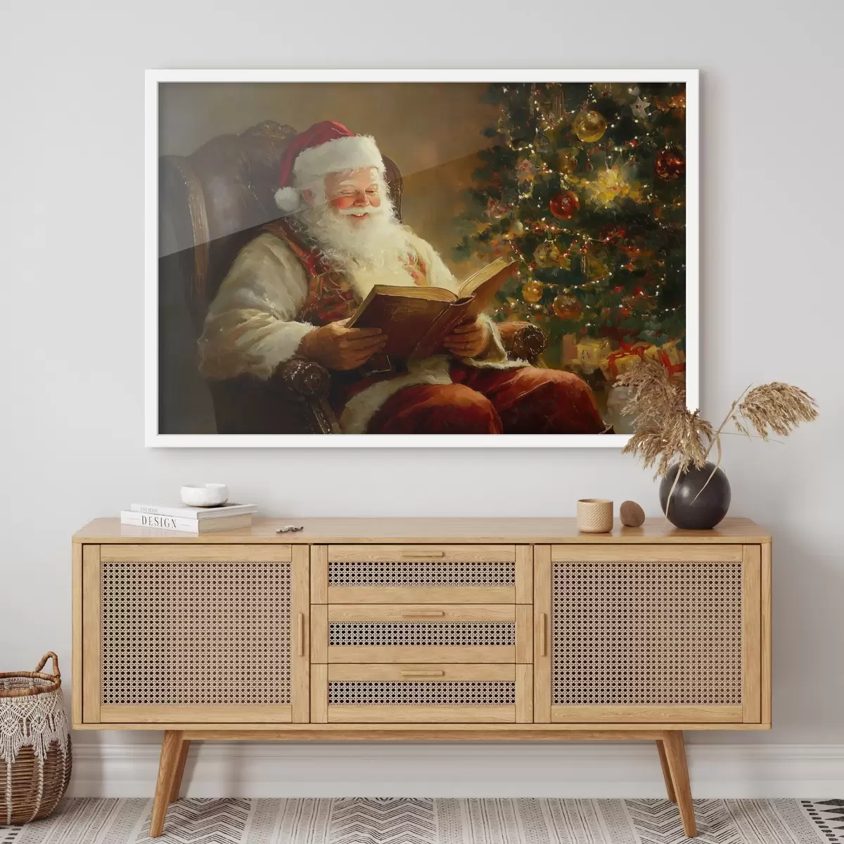 Poster Papá Noel está leyendo un libro cerca del árbol de Navidad Nr f42100