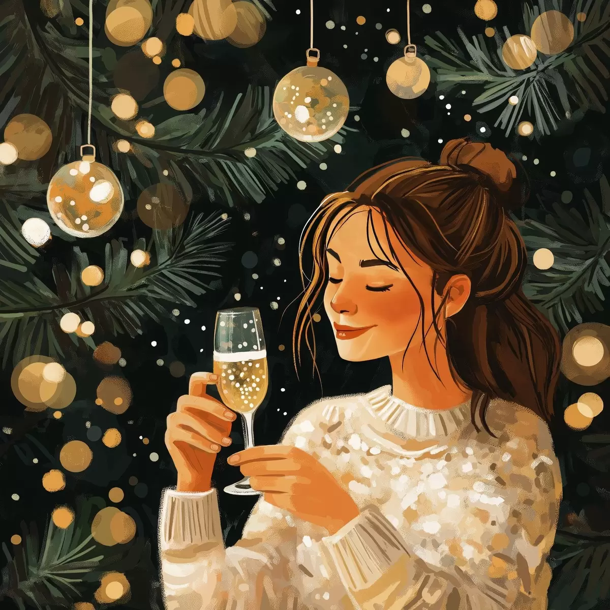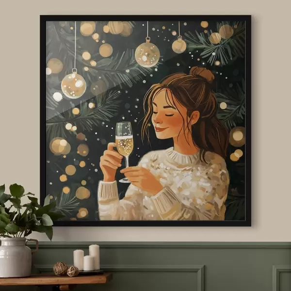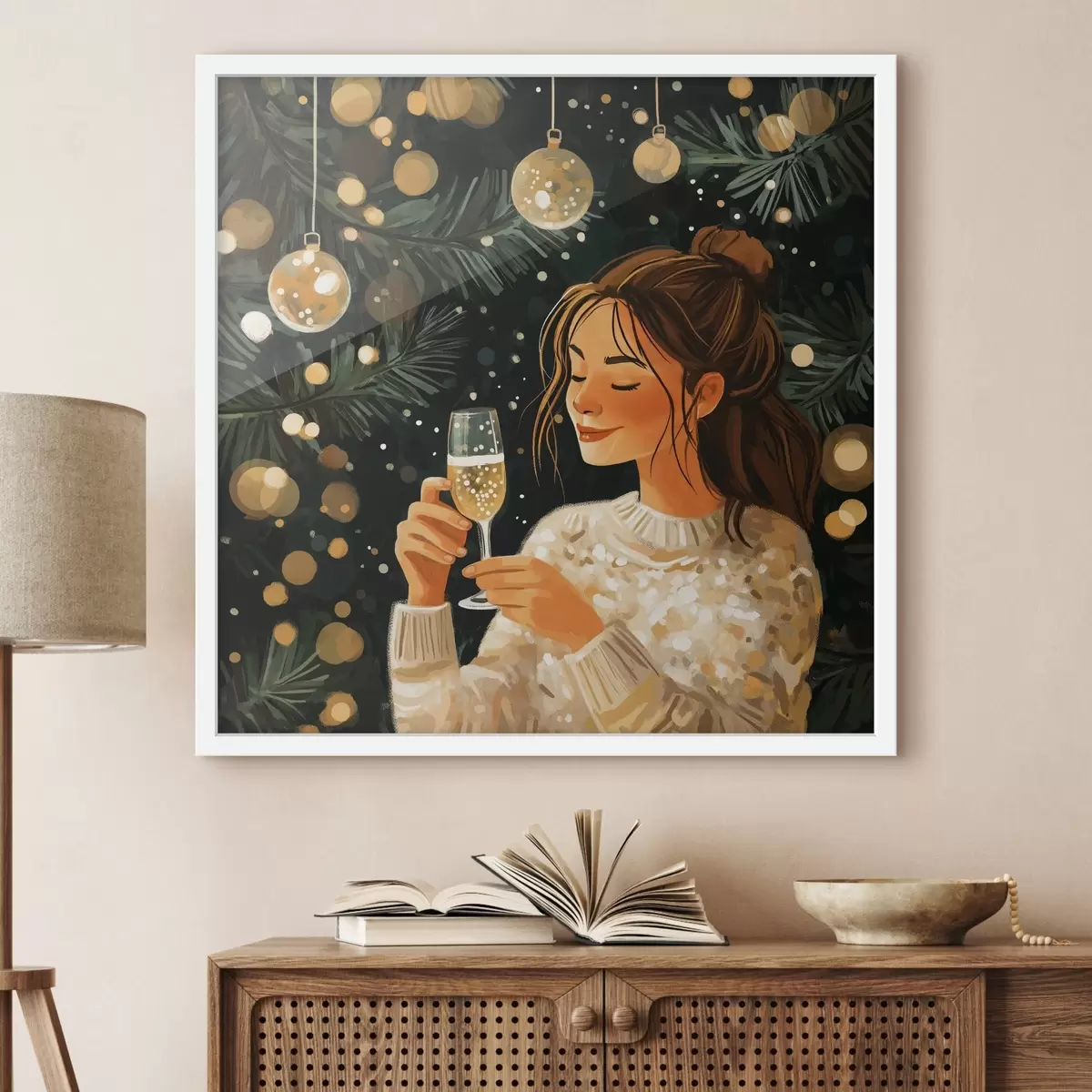 Poster Una chica con una copa de champán en Nochevieja f42102