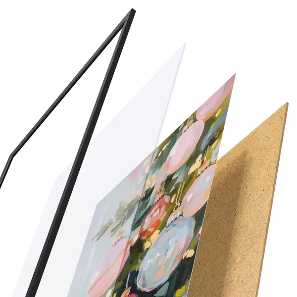 El póster consta de marco, plexiglás, imagen impresa y soporte de aglomerado. El póster puede colgarse inmediatamente en la pared gracias a los soportes de la parte posterior.