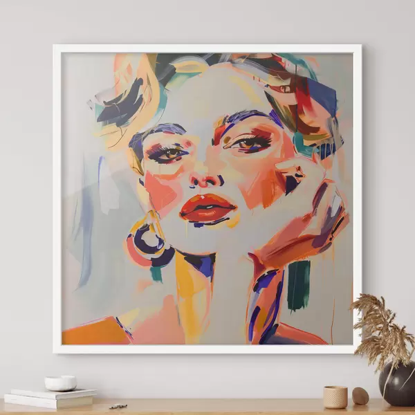 Poster Retrato de mujer con trazos multicolores f42111