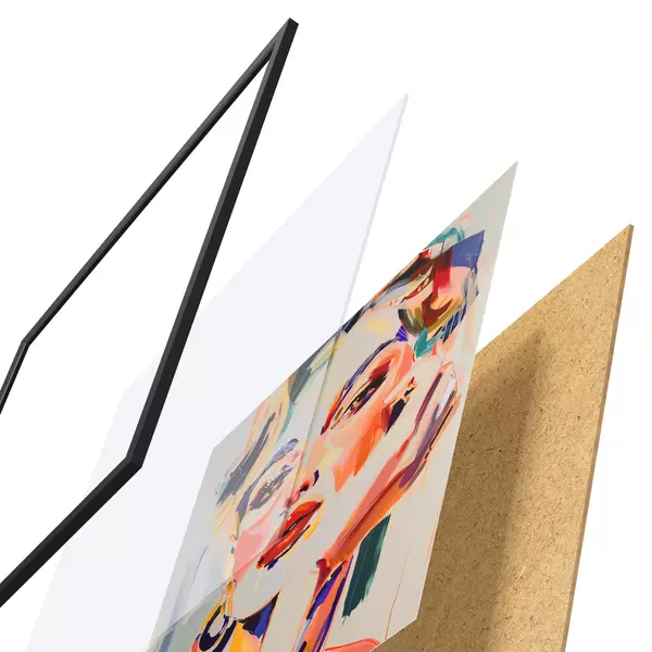El póster consta de marco, plexiglás, imagen impresa y soporte de aglomerado. El póster puede colgarse inmediatamente en la pared gracias a los soportes de la parte posterior.