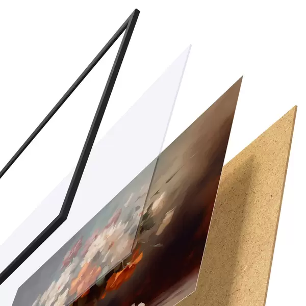 El póster consta de marco, plexiglás, imagen impresa y soporte de aglomerado. El póster puede colgarse inmediatamente en la pared gracias a los soportes de la parte posterior.