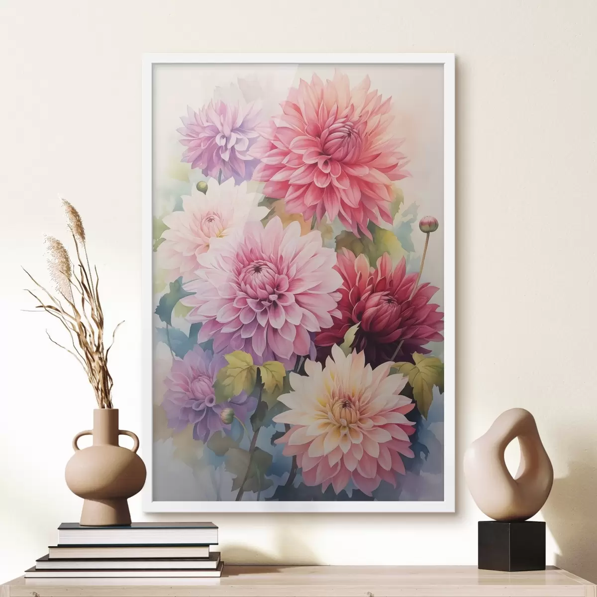 Poster Brillantes crisantemos imitación de estilo acuarela Nr f42116