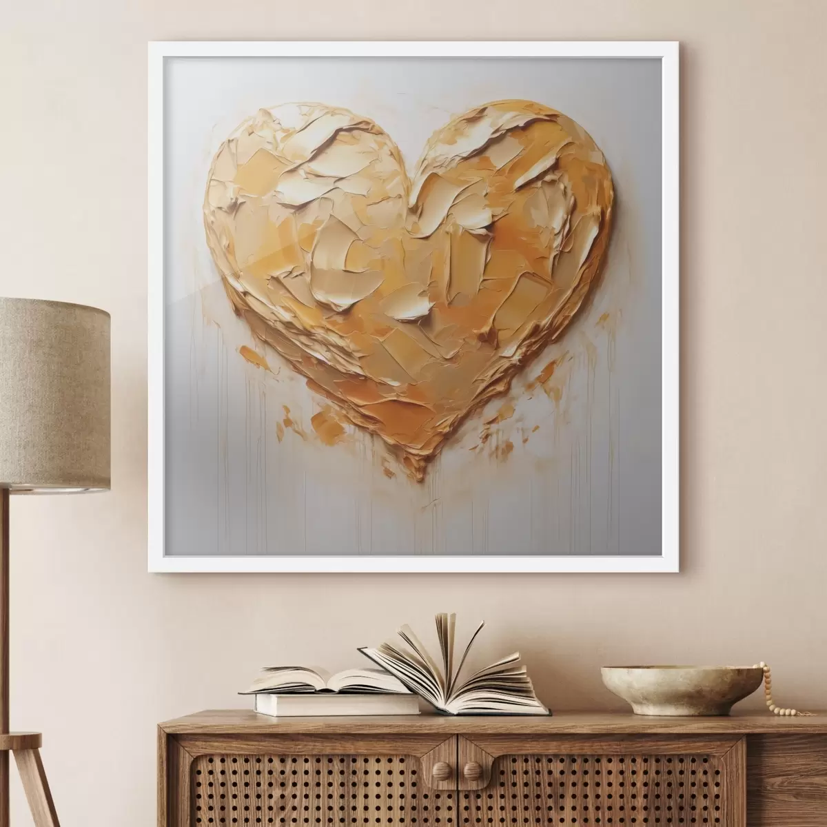Poster Corazón imitación de trazos de pintura, tonos amarillos y naranjas f42124
