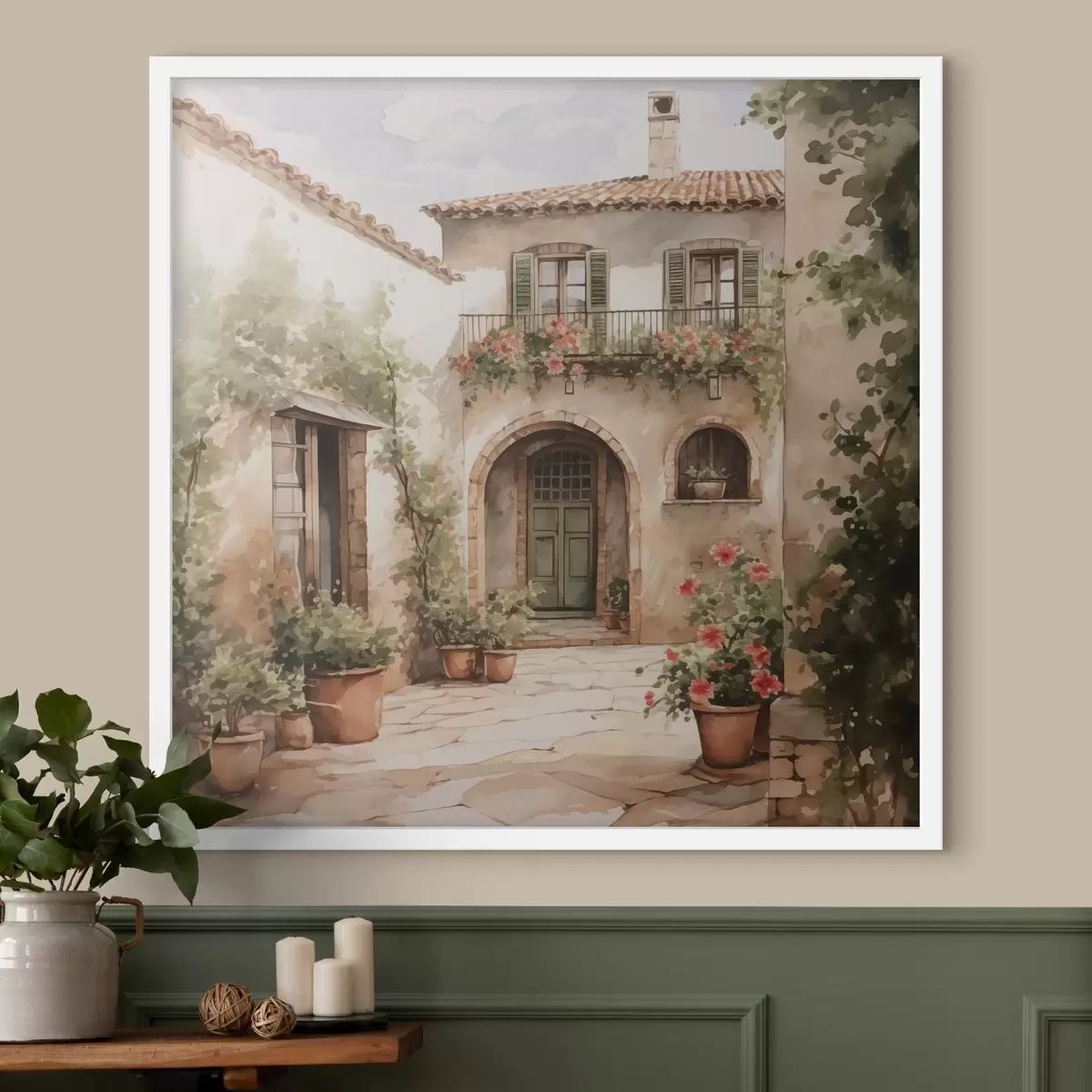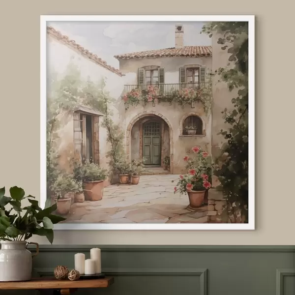 Poster Patio italiano con macetas imitación acuarela Nr f42126