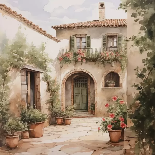 Poster Patio italiano con macetas imitación acuarela Nr f42126