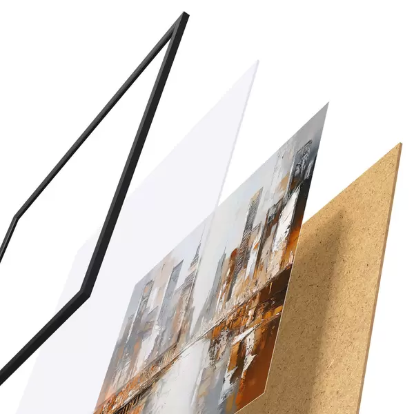 El póster consta de marco, plexiglás, imagen impresa y soporte de aglomerado. El póster puede colgarse inmediatamente en la pared gracias a los soportes de la parte posterior.