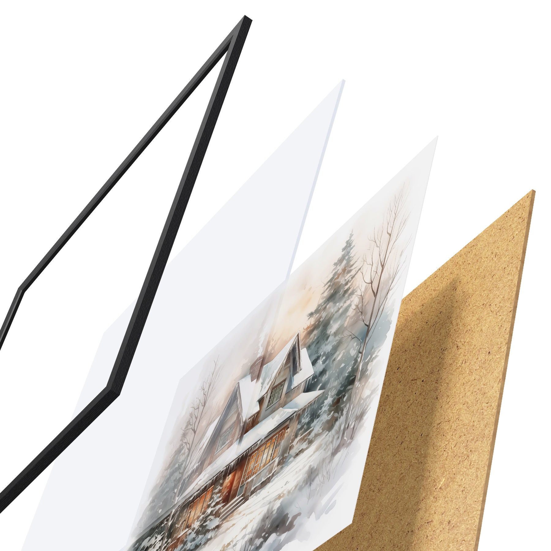 Poster Casa en un bosque nevado imitación acuarela Nr f42137