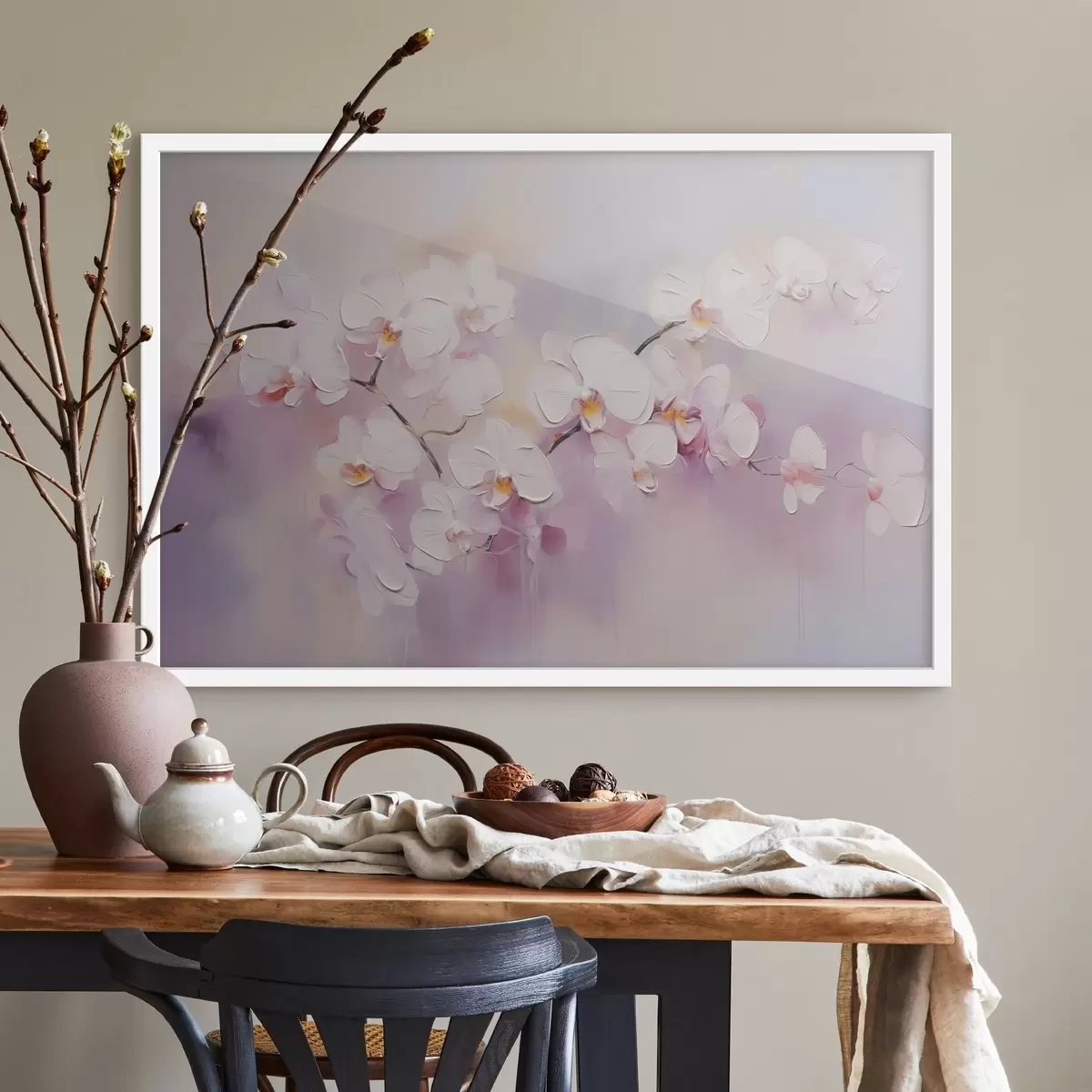 Poster Rama con orquídeas blancas imitación de pintura f42141
