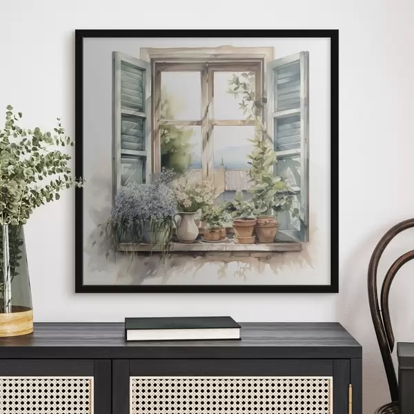 Poster Vegetación en el alféizar de la ventana imitación de acuarela f42144