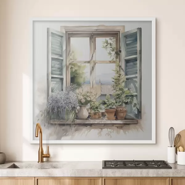 Poster Vegetación en el alféizar de la ventana imitación de acuarela Nr f42144