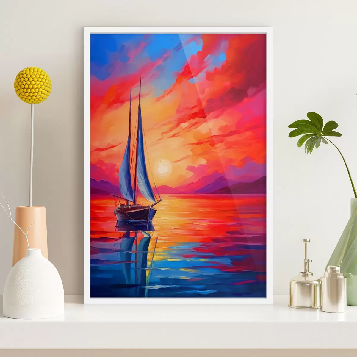 Poster Velero sobre el fondo de una brillante puesta de sol Nr f42151