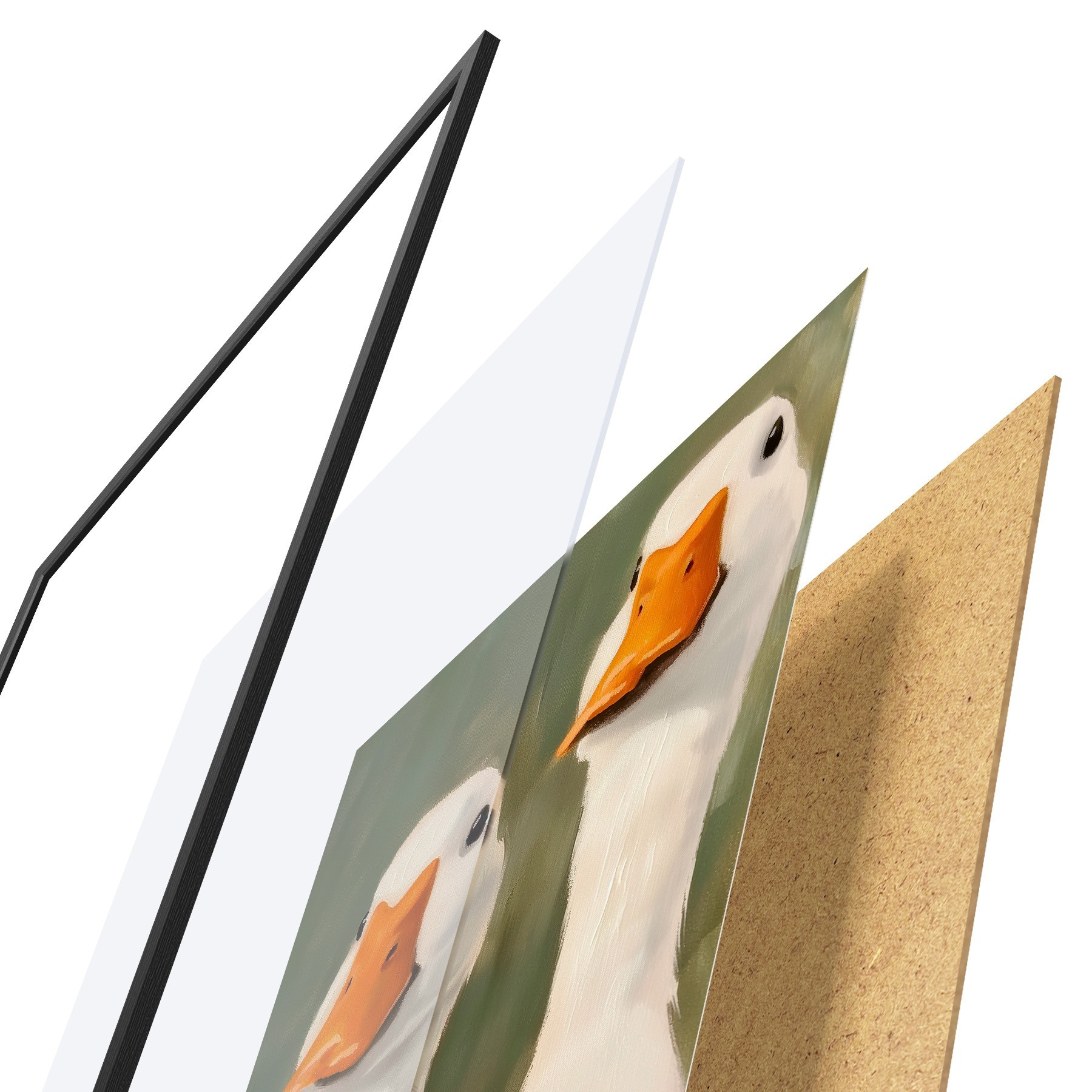 El póster consta de marco, plexiglás, imagen impresa y soporte de aglomerado. El póster puede colgarse inmediatamente en la pared gracias a los soportes de la parte posterior.