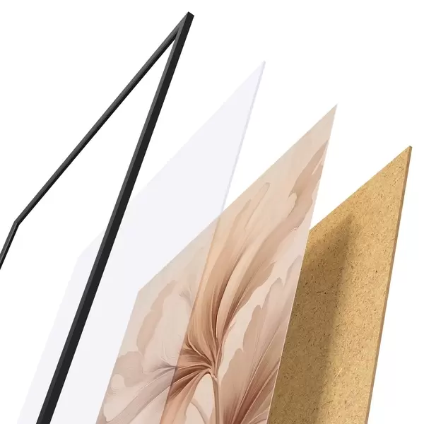 El póster consta de marco, plexiglás, imagen impresa y soporte de aglomerado. El póster puede colgarse inmediatamente en la pared gracias a los soportes de la parte posterior.