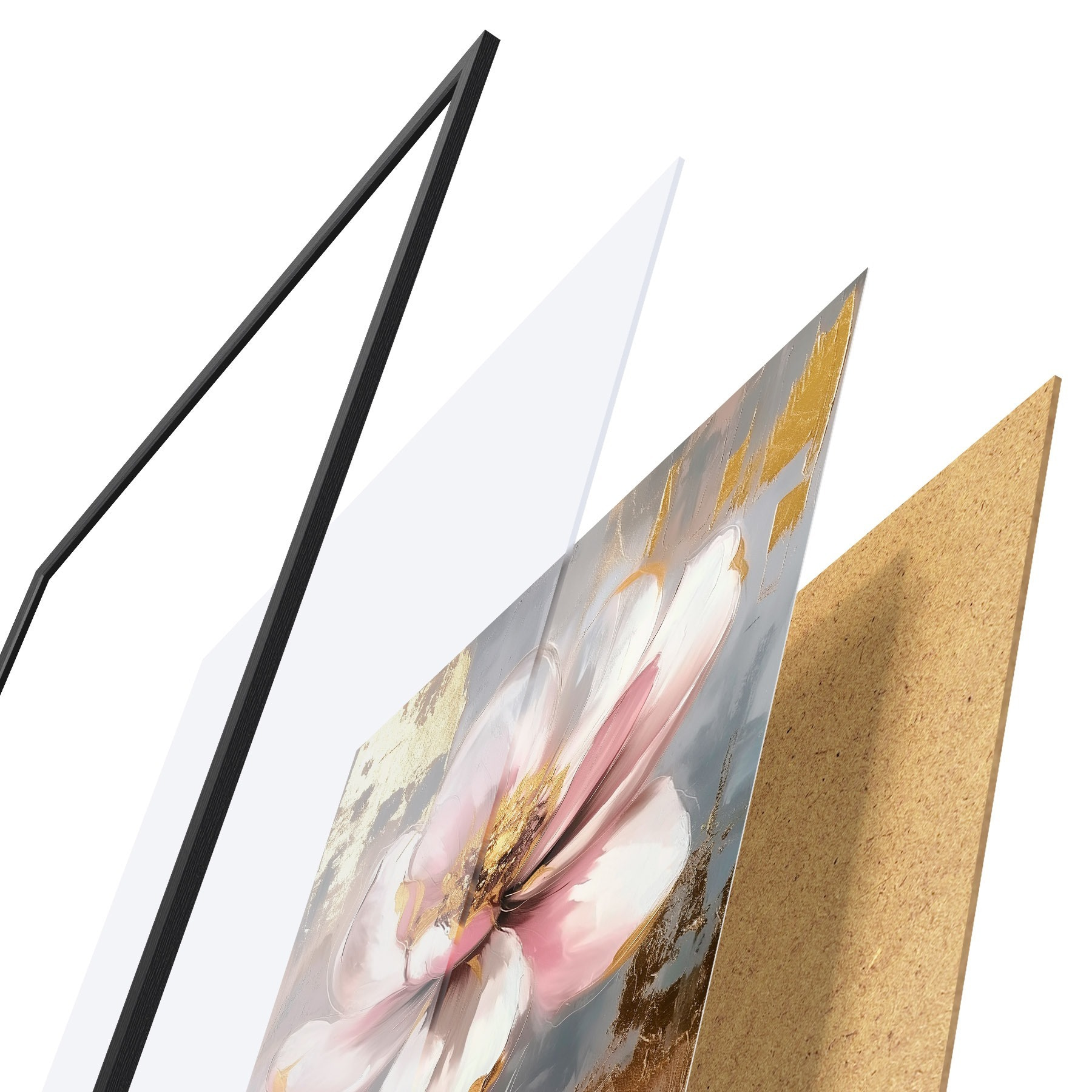 El póster consta de marco, plexiglás, imagen impresa y soporte de aglomerado. El póster puede colgarse inmediatamente en la pared gracias a los soportes de la parte posterior.