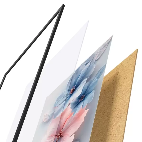 El póster consta de marco, plexiglás, imagen impresa y soporte de aglomerado. El póster puede colgarse inmediatamente en la pared gracias a los soportes de la parte posterior.