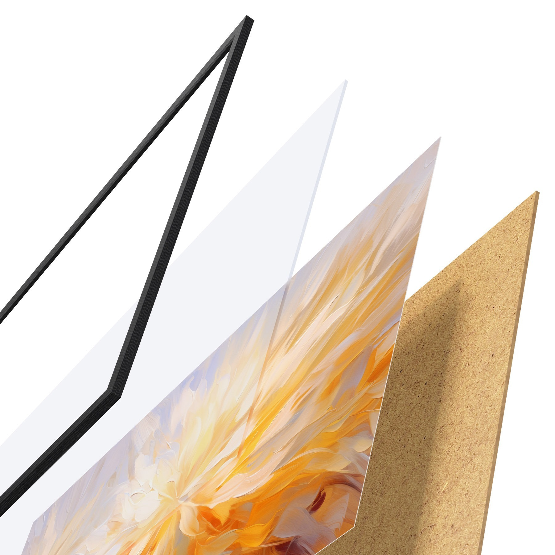 El póster consta de marco, plexiglás, imagen impresa y soporte de aglomerado. El póster puede colgarse inmediatamente en la pared gracias a los soportes de la parte posterior.
