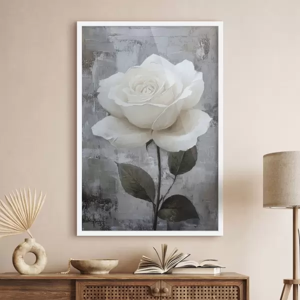 Poster Rosa blanca dibujada a mano sobre fondo de hormigón Nr f42185