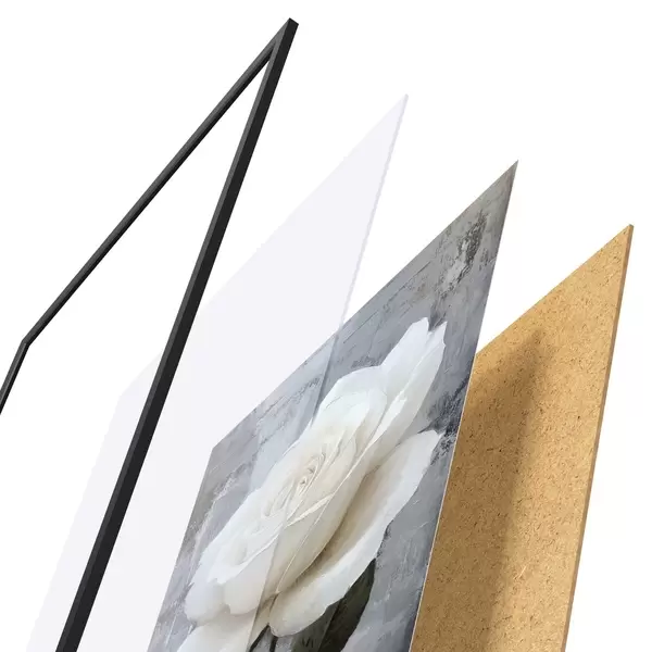 El póster consta de marco, plexiglás, imagen impresa y soporte de aglomerado. El póster puede colgarse inmediatamente en la pared gracias a los soportes de la parte posterior.