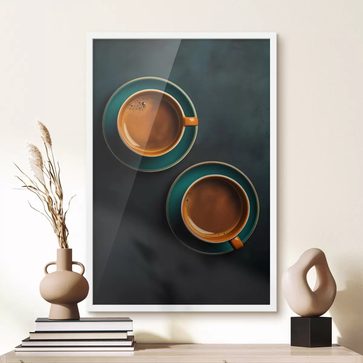 Poster Dos tazas de café sobre fondo oscuro Nr f42190