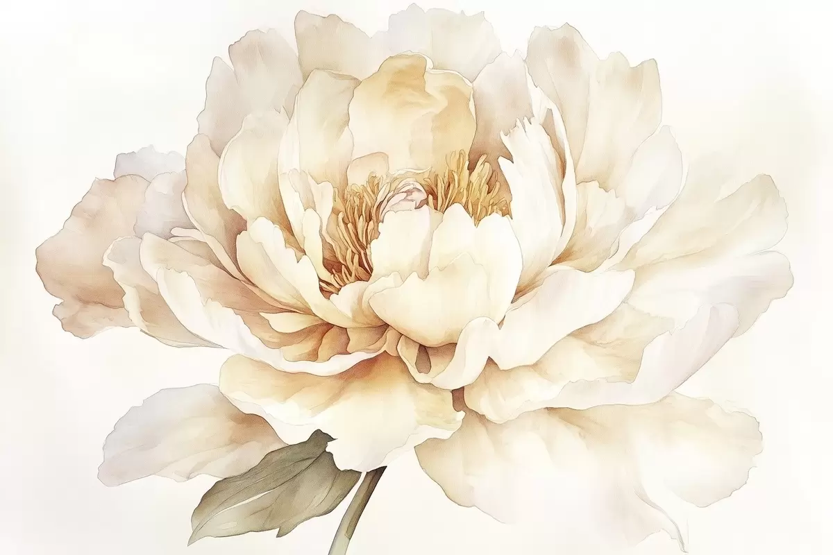 Poster Preciosa flor de peonía, colores suaves y cremosos, estilo acuarela Nr f42201