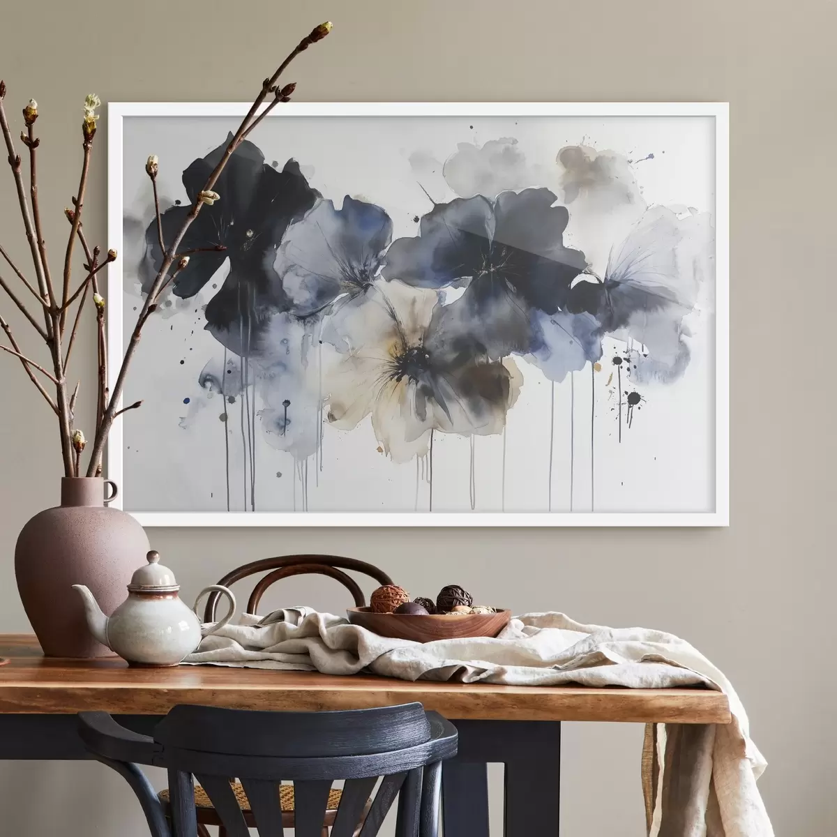 Poster Flores de acuarela, estilo fluido, colores azules Nr f42207