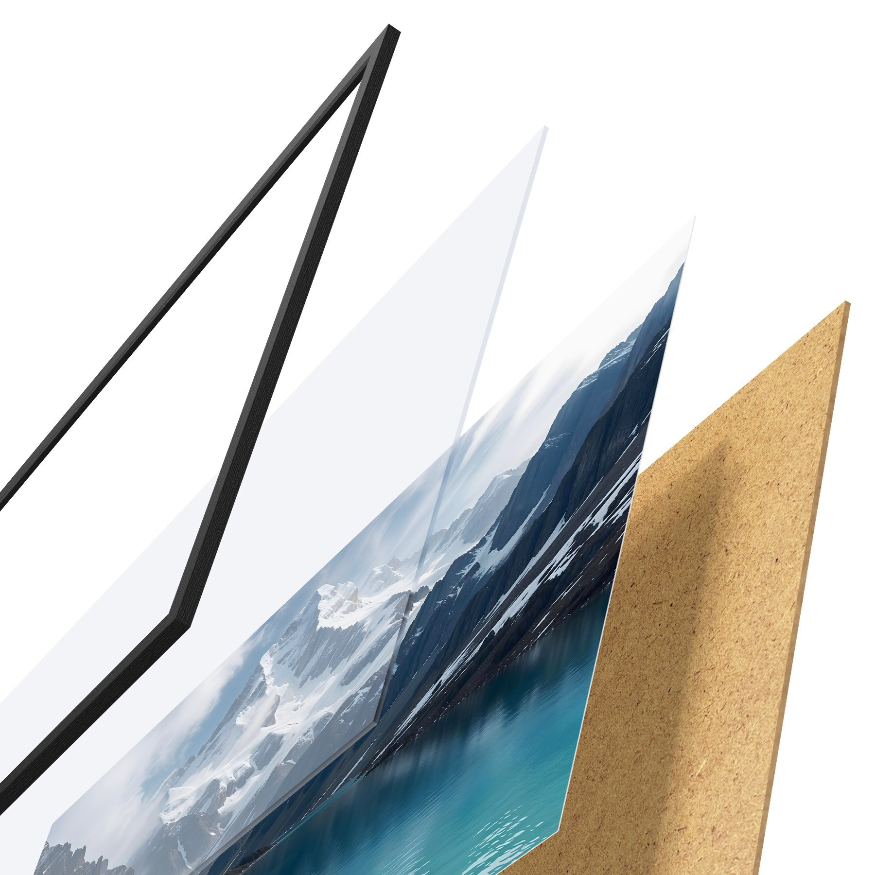 El póster consta de marco, plexiglás, imagen impresa y soporte de aglomerado. El póster puede colgarse inmediatamente en la pared gracias a los soportes de la parte posterior.