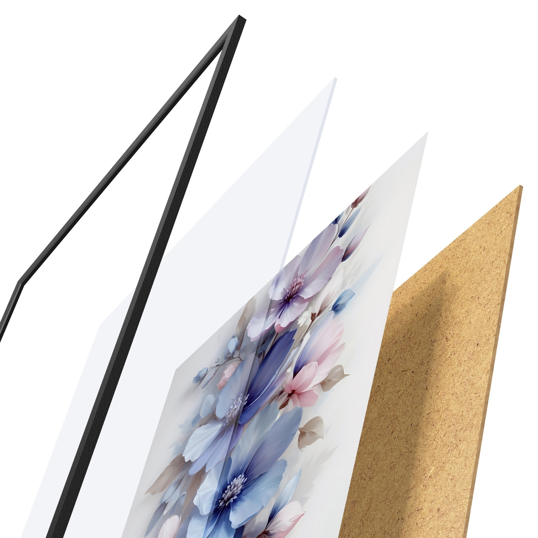 El póster consta de marco, plexiglás, imagen impresa y soporte de aglomerado. El póster puede colgarse inmediatamente en la pared gracias a los soportes de la parte posterior.