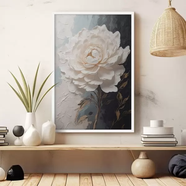 Poster Flor sobre fondo de óleo blanco y negro f42249