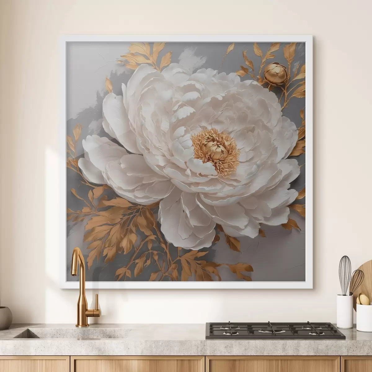 Poster Peonía blanca sobre fondo gris Nr f42260