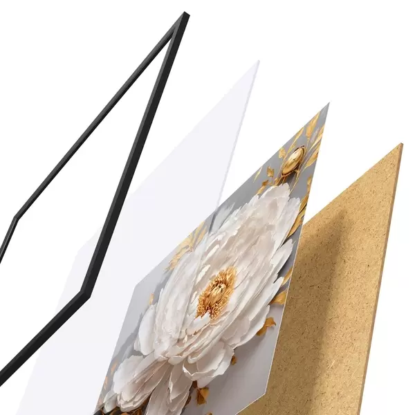 El póster consta de marco, plexiglás, imagen impresa y soporte de aglomerado. El póster puede colgarse inmediatamente en la pared gracias a los soportes de la parte posterior.