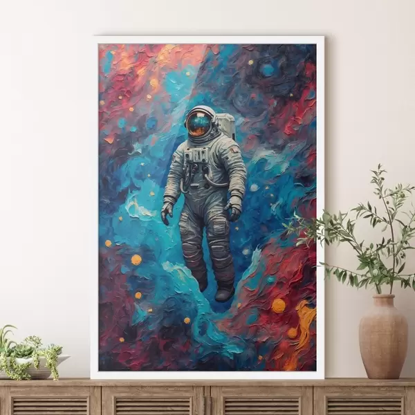 Poster Astronauta sobre fondo espacial abstracto al óleo Nr f42265