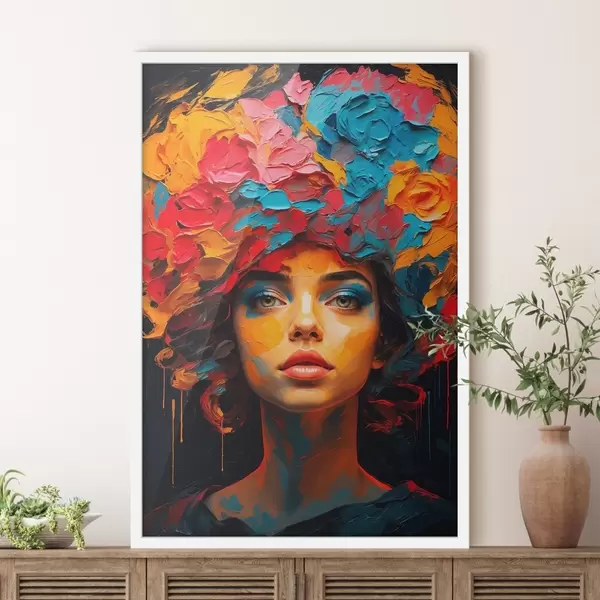 Poster Chica con flores en la cabeza al óleo f42271